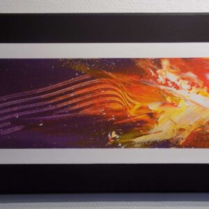 Les bords sont peints en gris, et un système d’attache est en place, permettant d’accrocher le tableau sans encadrement, dès la réception .