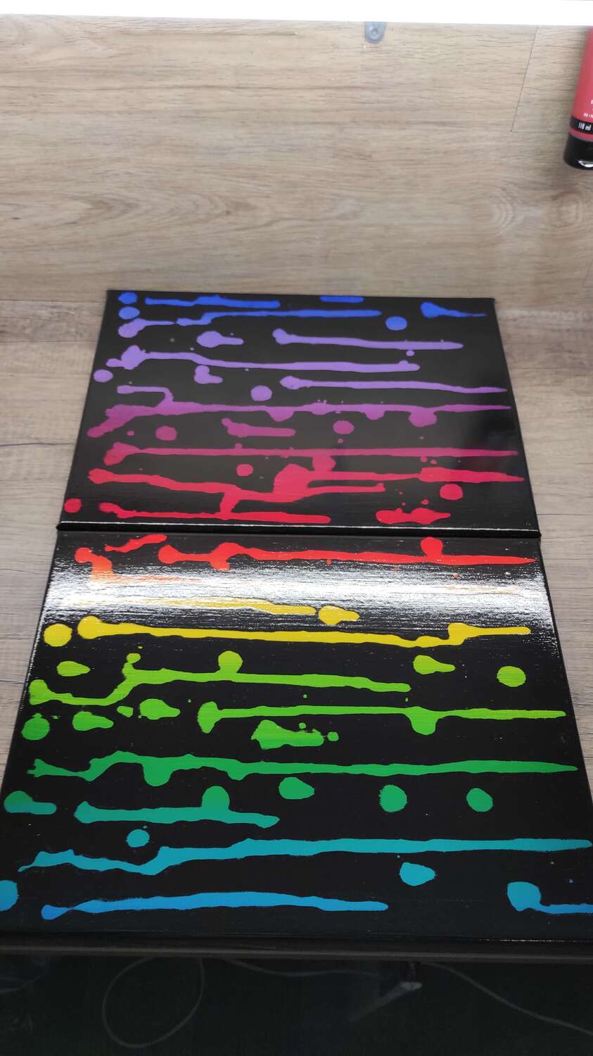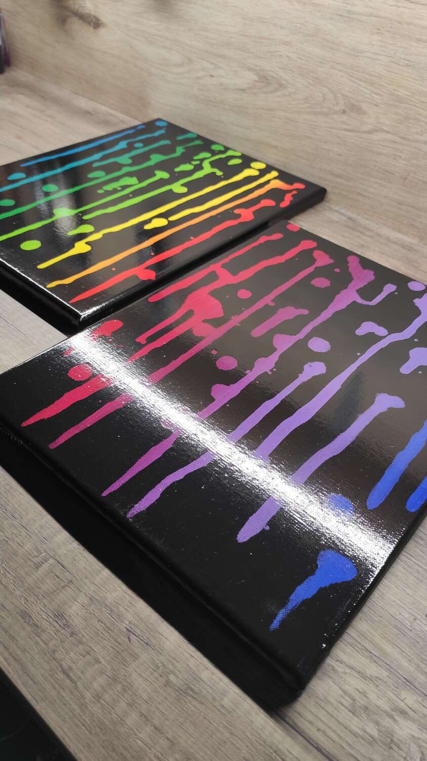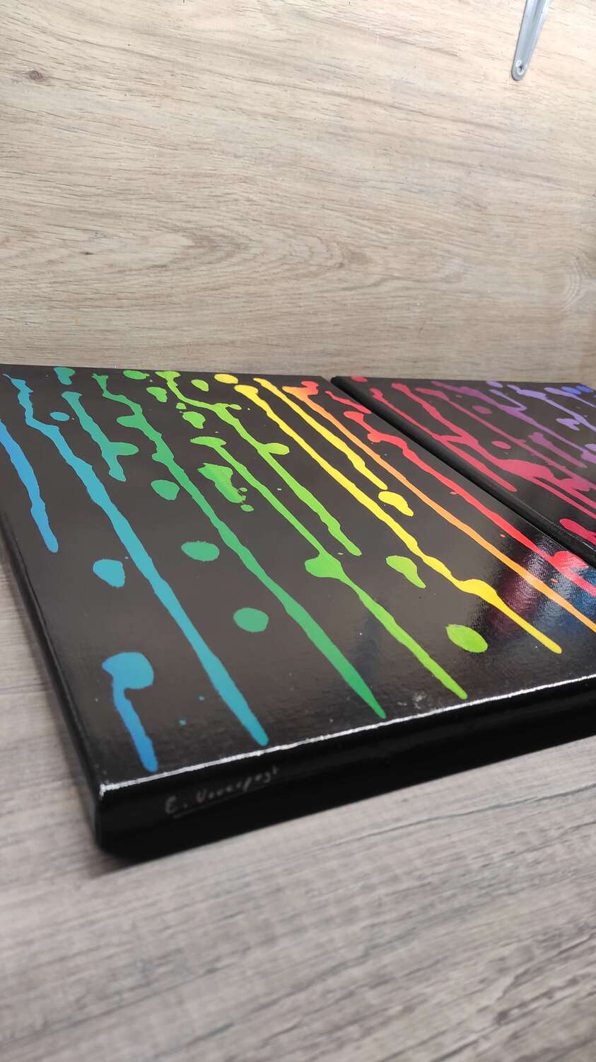 Est un tableau abstrait à l’acrylique très coloré et fait main dans mon atelier à Ebersheim en Alsace.